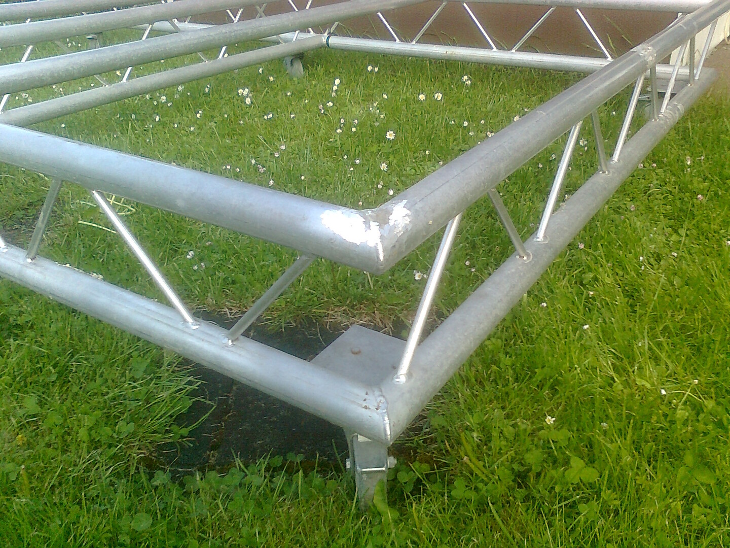 - Das Gestänge ist Stahlrohr dazu gehören Dach- und Seitenplanen um das Zelt komplett zu schließen.