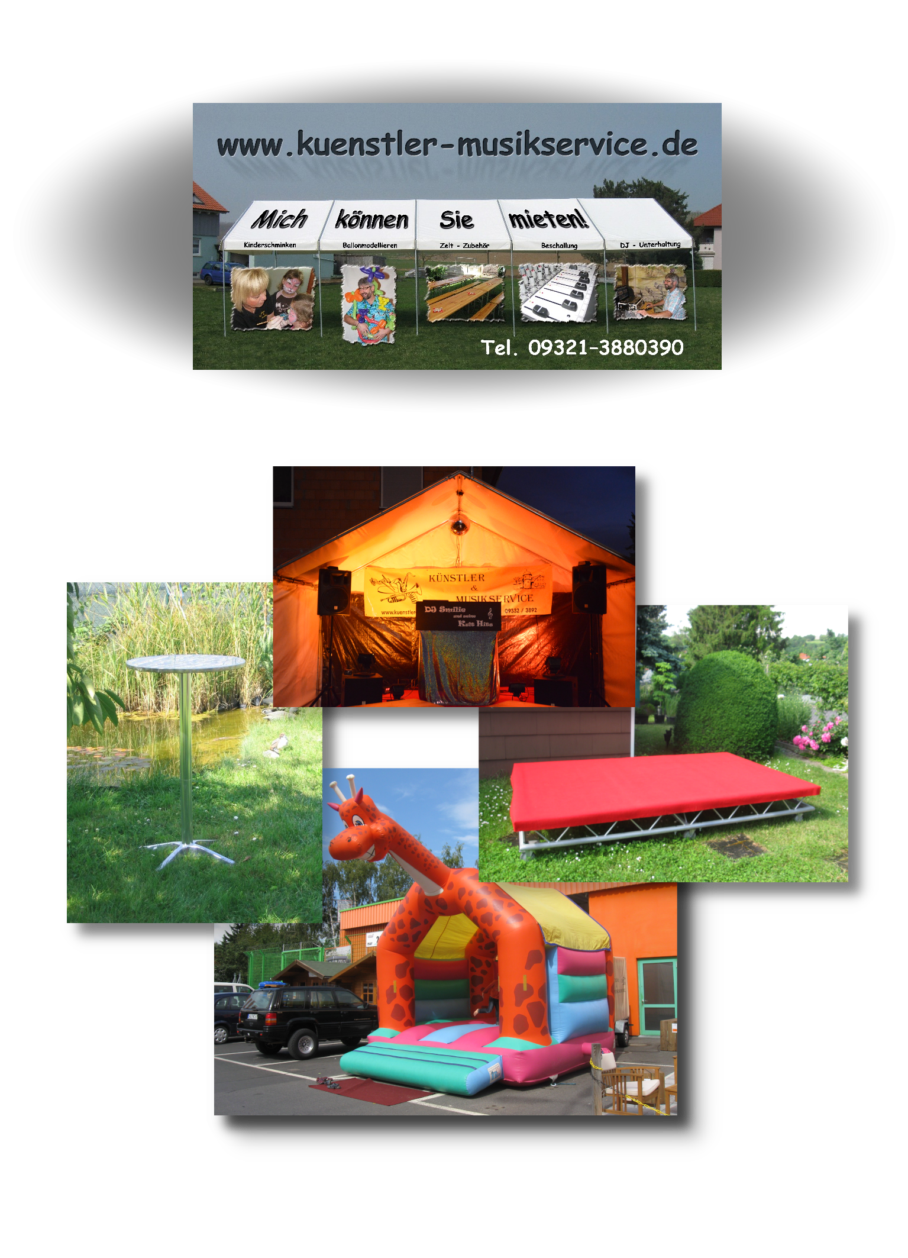 Ich habe weiterhin Kontakte zu einer großen Zeltbau- und Verleihfirma von Partyzelten, Festzelten, Bühnen, Zeltböden, Zubehör, Dekoration und Bierzeltgarnituren